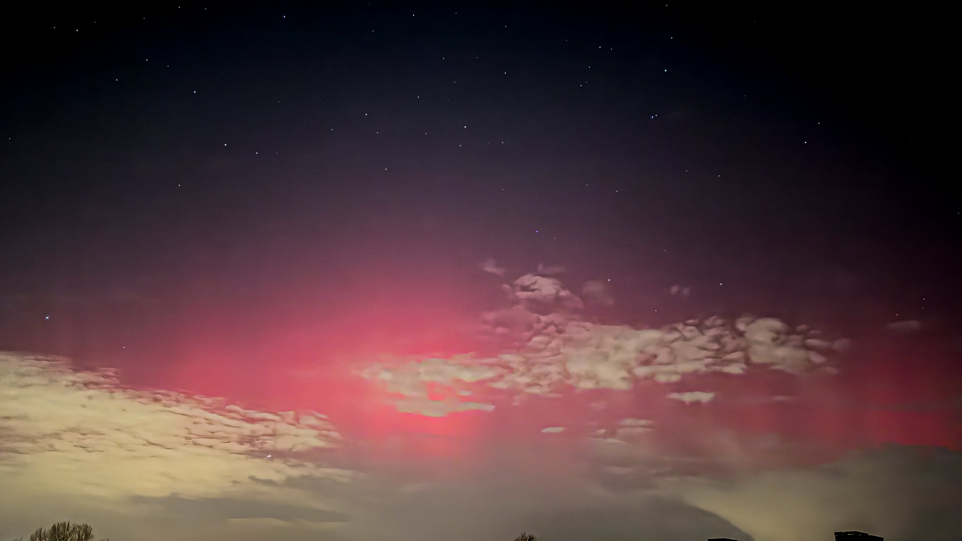 Around 21:30, my iPhone camera picked up the first hint: a faint, reddish glow low above the northern horizon. Barely visible to the eye, but unmistakably aurora on the screen. It was enough to keep me outside.